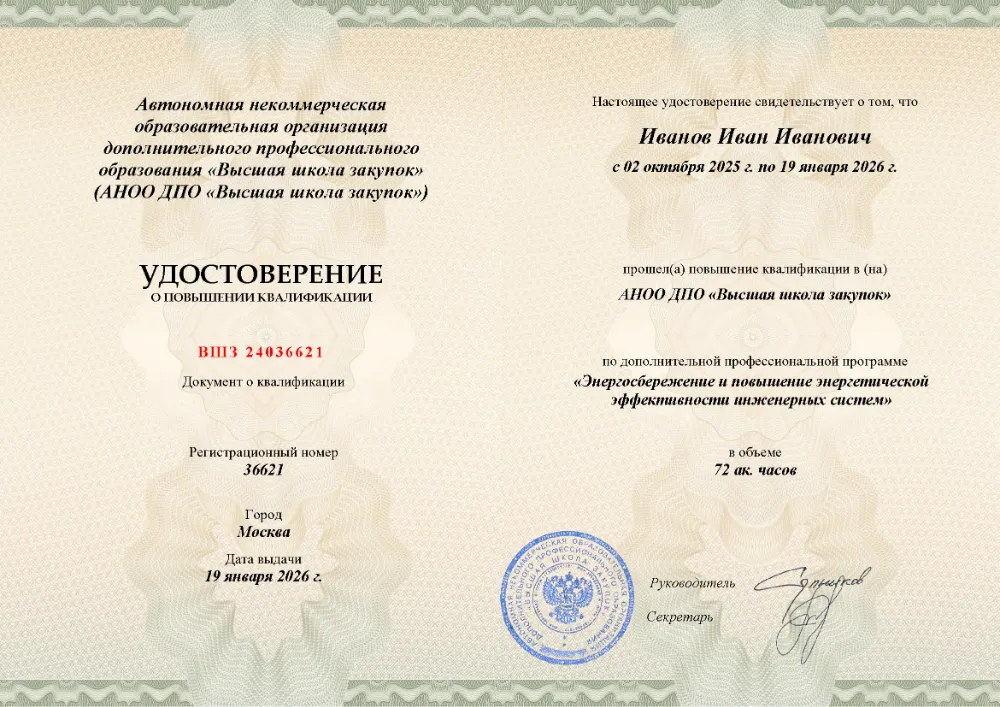 Программа повышения квалификации (72 часа) по энергосбережению и повышению эффективности инженерных систем в в Оренбурге. Освойте современные методы аудита, энергоменеджмент, инструменты оптимизации и цифровые технологии для снижения затрат в зданиях и на предприятиях.