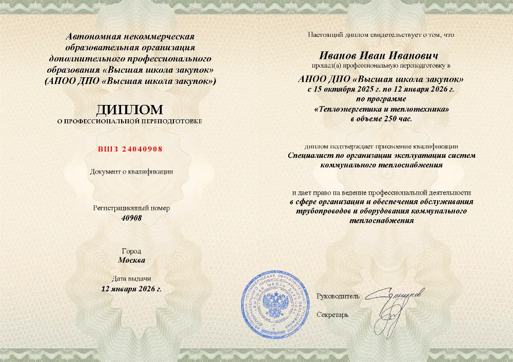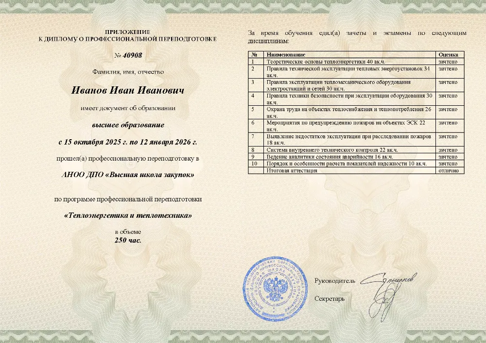 Программа профессиональной переподготовки (250 часов) для специалистов по теплоэнергетике в в Оренбурге. Освойте теоретические основы, техническую эксплуатацию и безопасность тепловых энергоустановок, правила охраны труда, пожарной безопасности и аналитику надежности объектов.