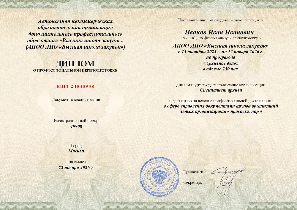 Это полноценная образовательная программа для получения дополнительной квалификации и освоения новой профессии. Для поступления также требуется высшее или среднее профессиональное образование (СПО). Итоговым документом является полноценный диплом о профессиональной переподготовке, который ценится на рынке труда. Программы являются наиболее объемными и начинаются от 250 академических часов, что обеспечивает глубокое погружение в специальность.